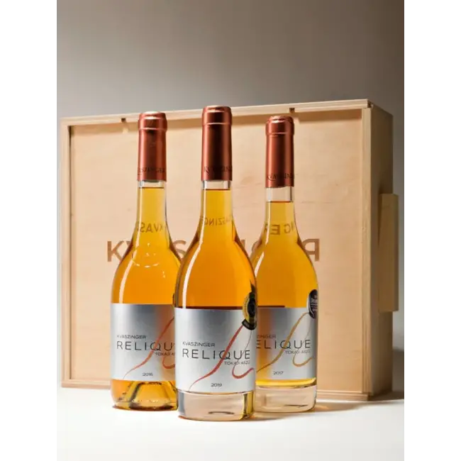 Minden tokaji termelő szívében és borai között különleges helyet foglal el az aszú. A kiemelkedően szép édesboros évjáratok során készült tételek pedig különösen – a RELIQUE fantázianév ezt a rendkívüli minőséget hivatott kifejezni. Az ünnepek tiszteletére idén ezen díjnyertes tételeink legjobbjait válogattuk össze. Természetesen ezt is gravírozott fadobozban szállítjuk.